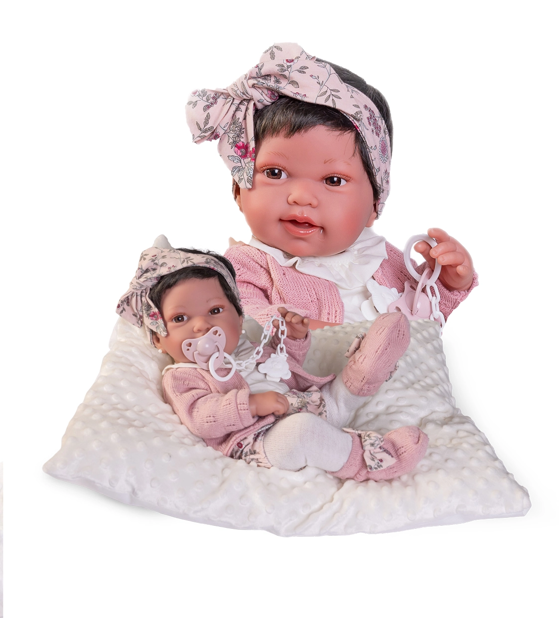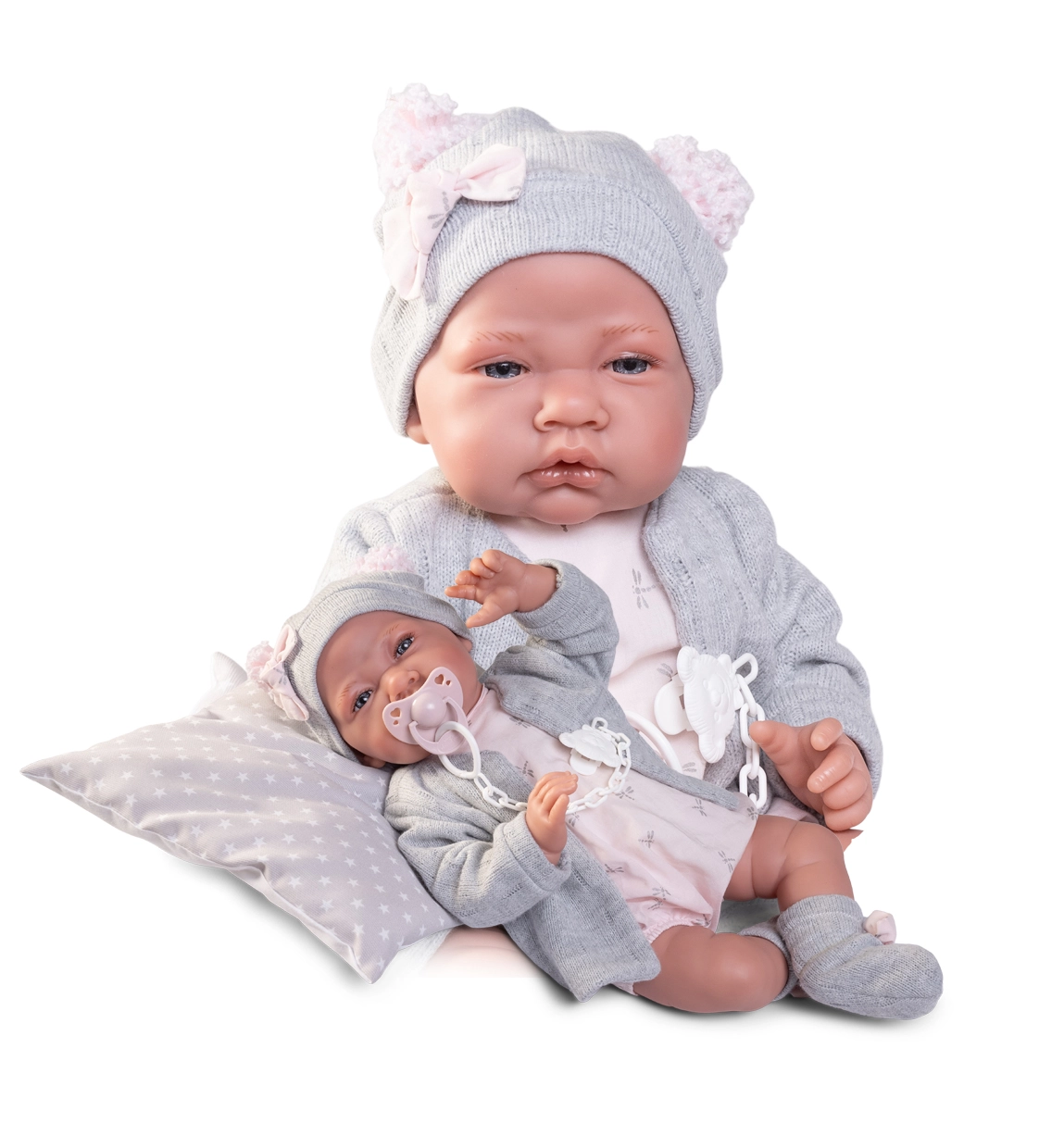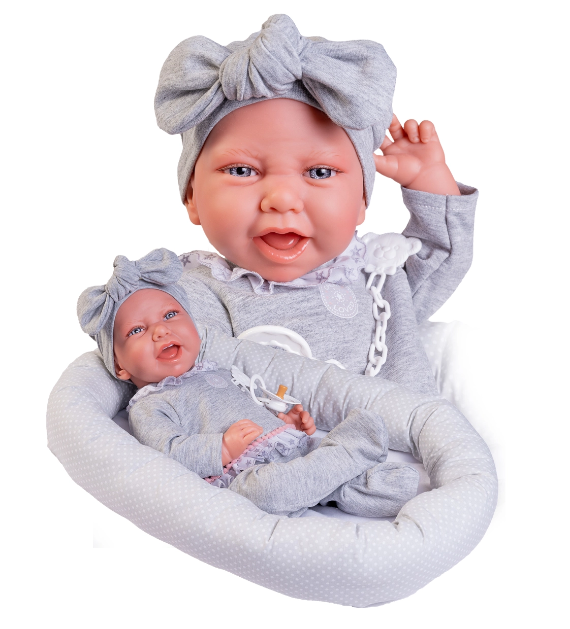 Izvēlieties zīdaiņa lelli pēc izmēra (apm. 28–50 cm), materiāla un funkcijām. Dažiem modeļiem iepriecina mirgojošas acis, skaņas efekti (raudāšana, bubināšana), iespēja dzert un čurāt vai magnētiskais knupītis; citiem ir kustīgas ekstremitātes un tie notur pozu kā īsts zīdainis. Reālistiski apģērbi, bodiji, cepurītes, sedziņas un sākuma kopšanas komplekti papildina lomu spēles par pārģērbšanu, barošanu un iemidzināšanu.
