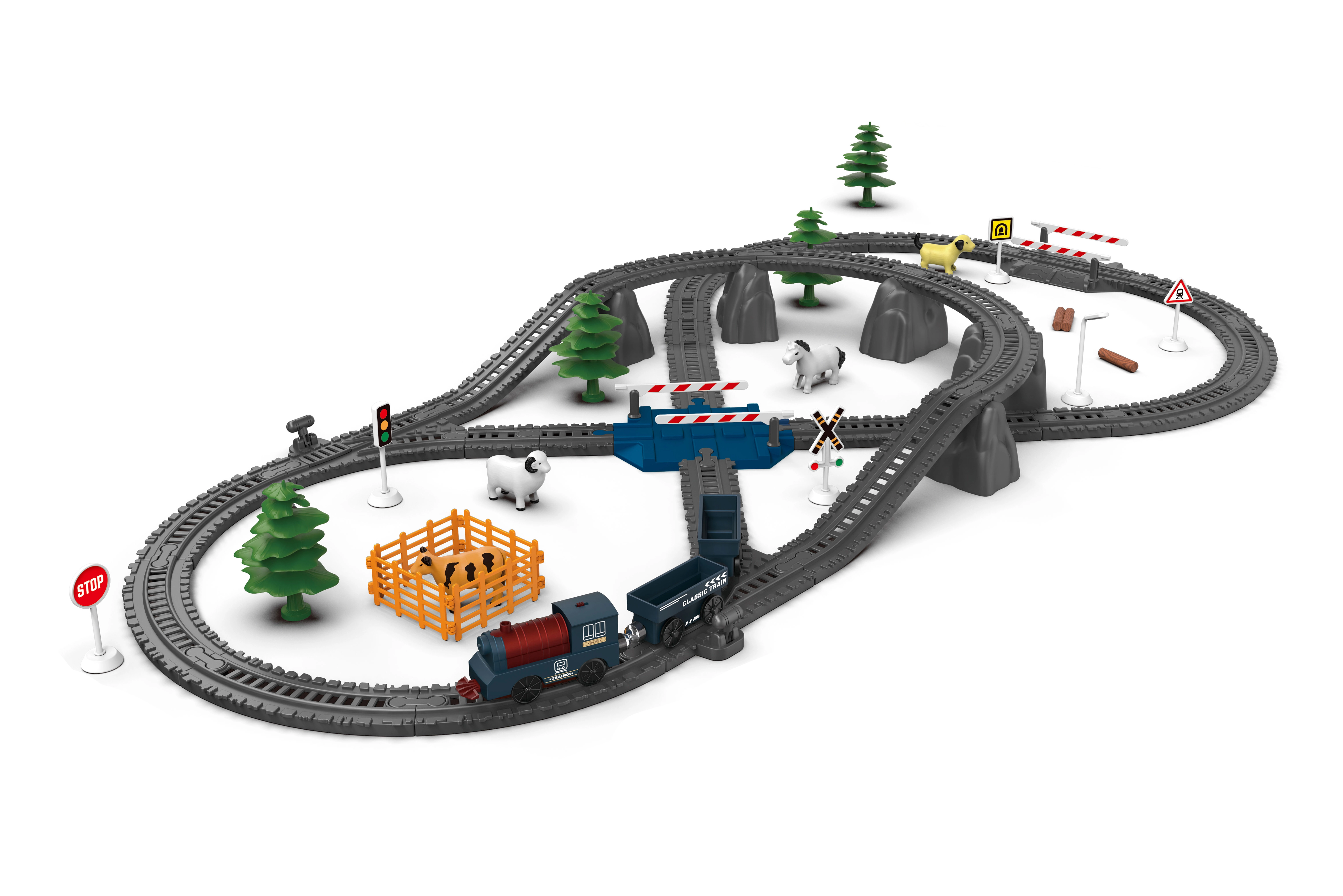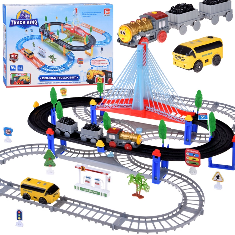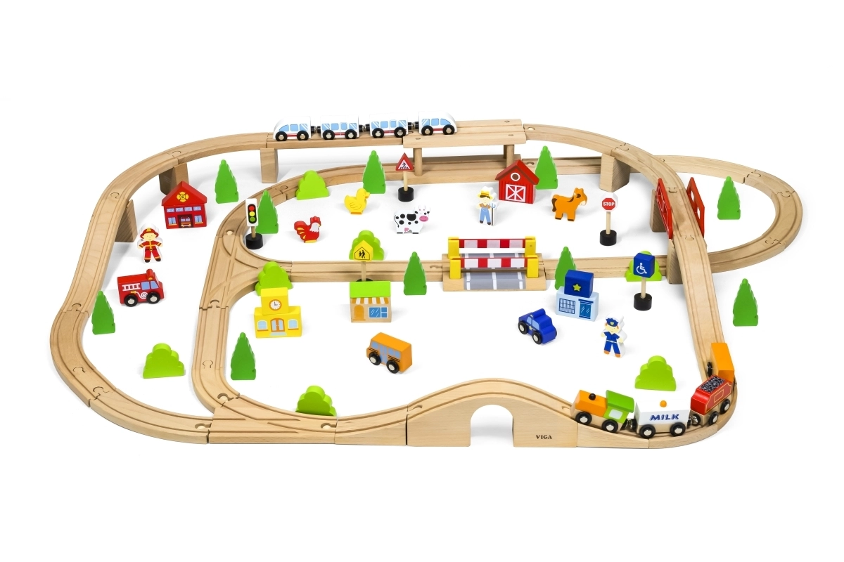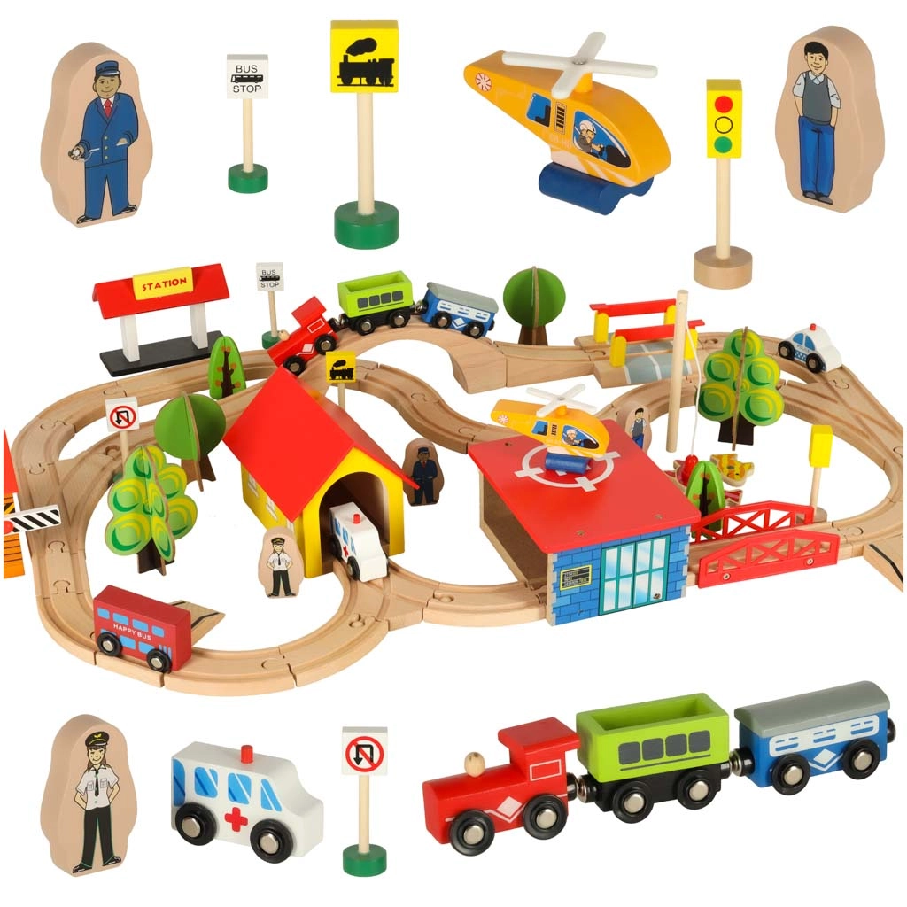 Izvēlieties starta komplektu vai uzbūvējiet plašu trasi no koka sliedēm, pārmijām, tiltiem un tuneļiem. Kvalitatīvs koks, gludi noslīpētas malas un droši materiāli nodrošina izturību un ilgu kalpošanas laiku. Modulārā sistēma un saderīgi paplašinājumi ļauj veidot jebkādas kombinācijas un pakāpeniski papildināt ar piederumiem.