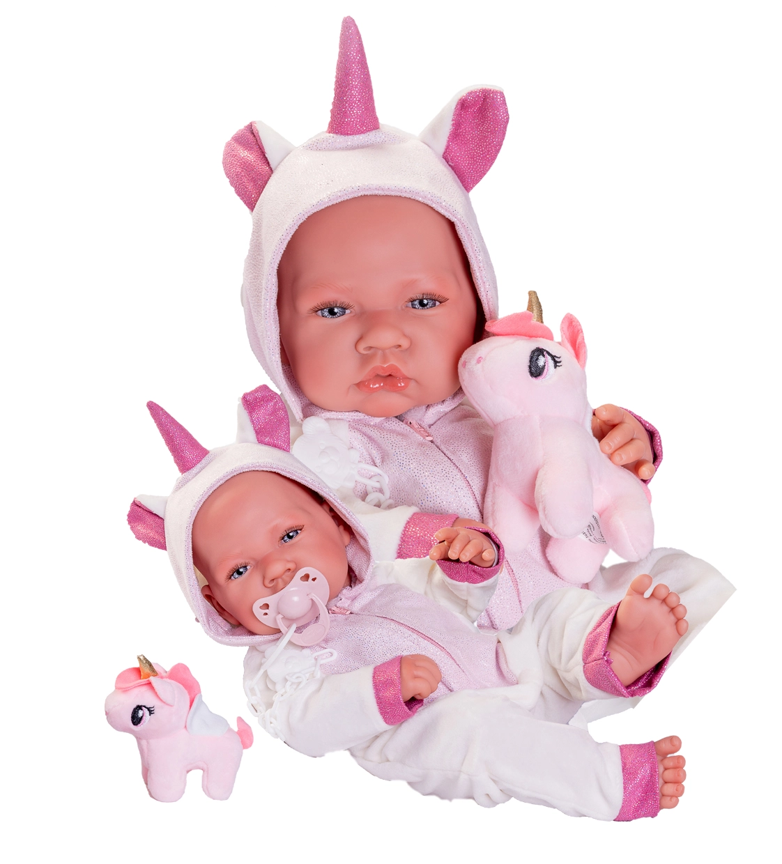 Izvēlieties lelles ar mīkstu ķermenīti mīļošanai vai pilnībā vinila lelles ar kustīgām ekstremitātēm un realistisku sejiņu. Maigs, pieskārienam patīkams vinils, roku gleznotas sejas iezīmes, detalizēti pirkstiņi un ādas ieloces padara katru Antonio Juan lelli par īstu mazuli; dažiem modeļiem ir arī matiņi un mīlīgi piederumi. Apģērbiņi, sedziņas, pudelītes vai knupītis iedvesmo iztēli un ilgu radošu rotaļu.