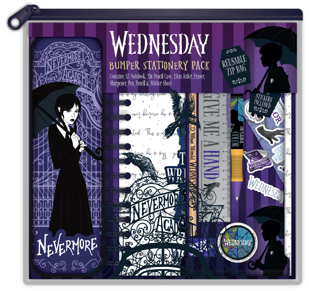 Šeit atradīsiet Wednesday lelles ar ikoniskajām bizītēm, kolekcionējamas Wednesday figūriņas, mīkstās rotaļlietas, puzles un galda spēles ar Nevermore motīvu, radošos komplektus un konstruktorus faniem. Wednesday kostīmi, maskas un aksesuāri veicina pārģērbšanos un lomu spēles; puzles, krāsojamās grāmatas un radošie komplekti attīsta sīko motoriku un iztēli. Viss ar oficiālu licenci, izturīgiem materiāliem un ilgmužību ikdienas rotaļām.