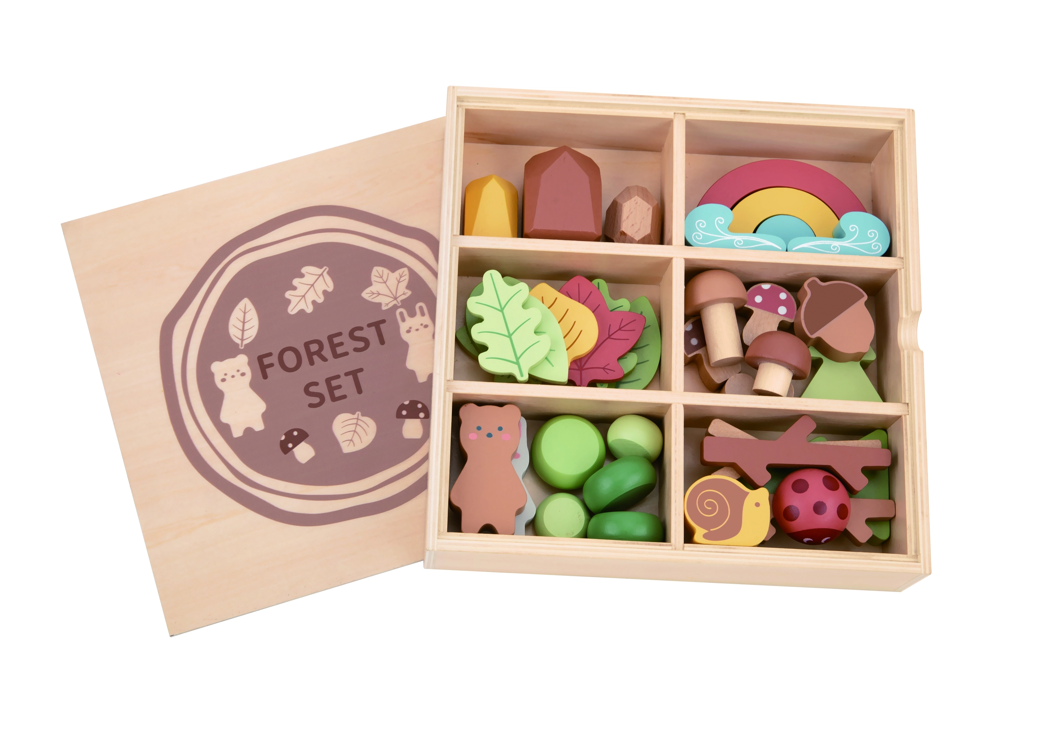 Ienāciet stāstu pasaulē, kur koka figūriņas atdzīvojas un koka spēļu komplekti atver bērnu fantāziju. Dzīvnieku, cilvēciņu un transportlīdzekļu koka figūriņas veicina atvērto spēli un lomu spēles, attīsta iztēli, vārdu krājumu un stāstīšanas prasmes. Tematiskie spēļu komplekti (ferma, pilsēta, zoodārzs, mežs) un figūriņu komplekti sniedz bezgalīgas kombinācijas stāstiem un lieliski sader ar citām koka rotaļlietām.