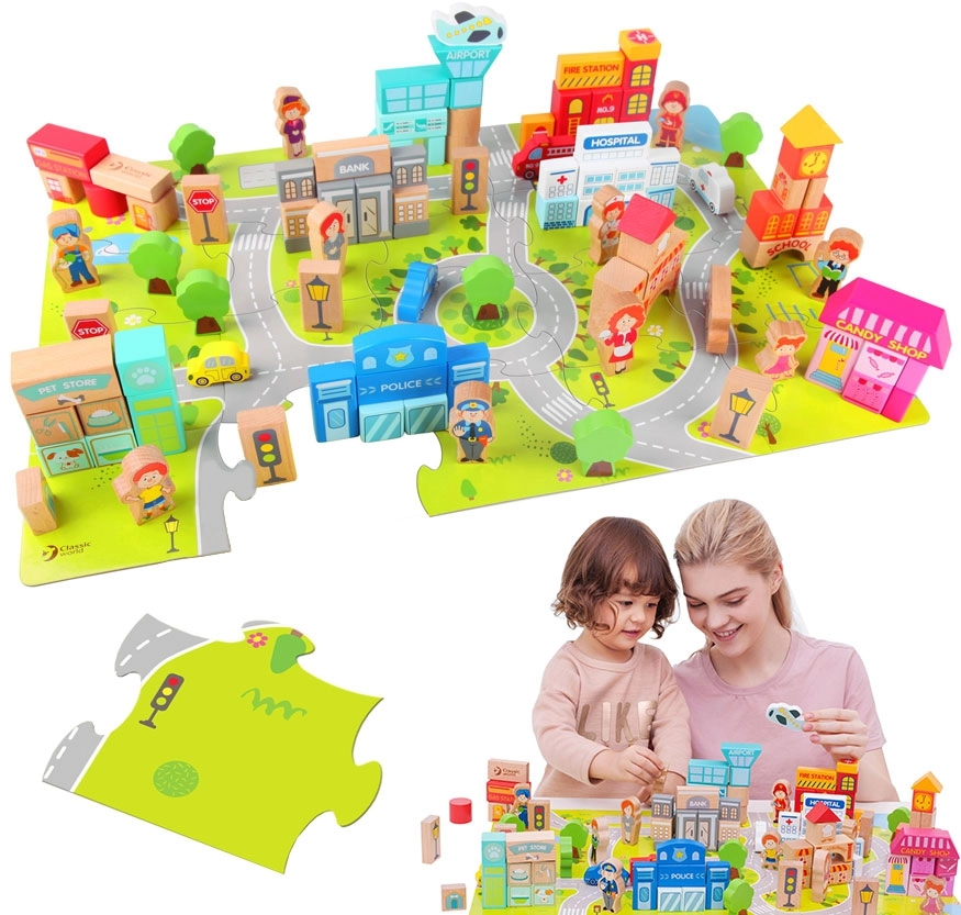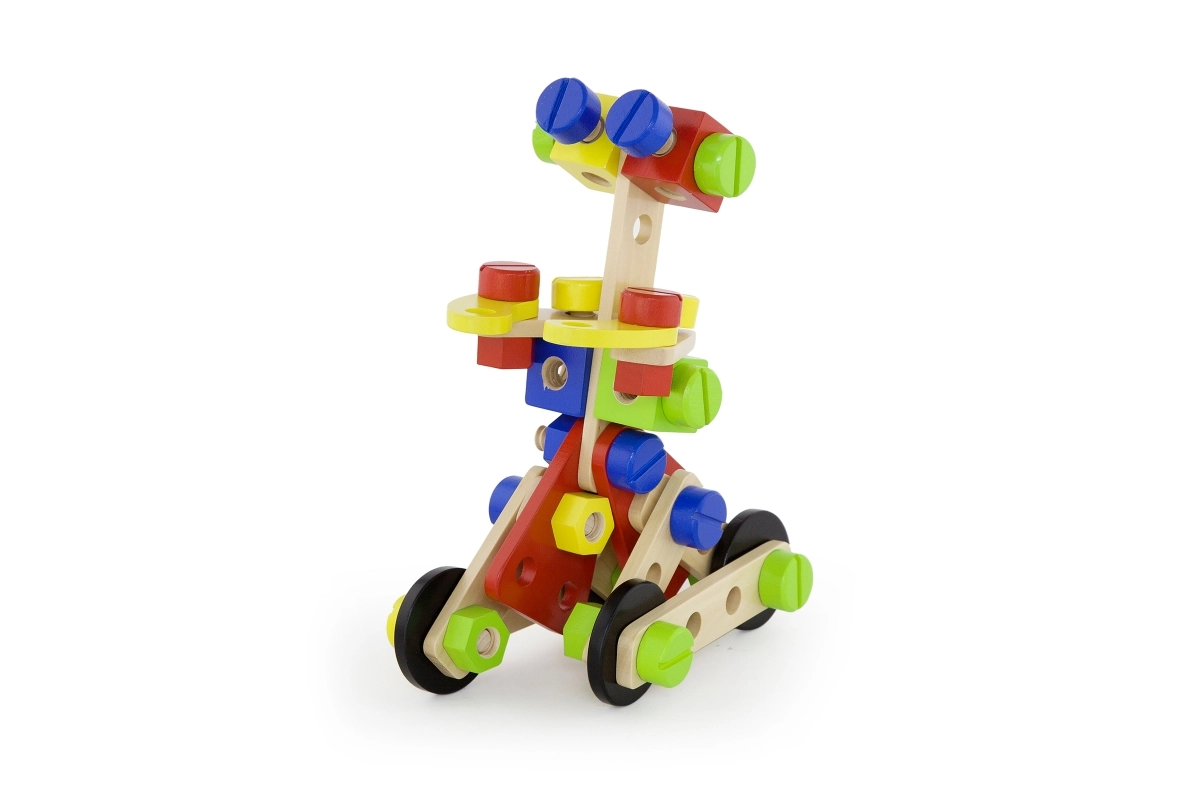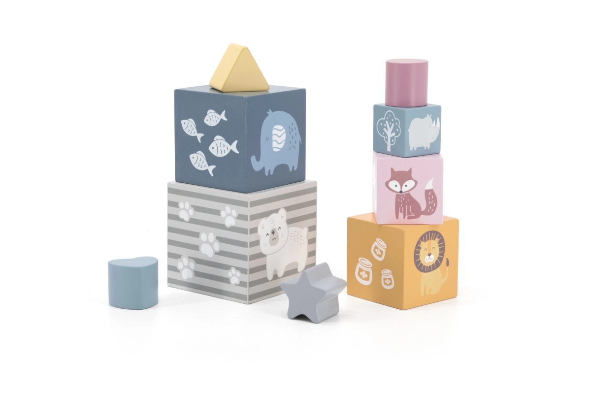 Rūpīgi izgatavotajām detaļām no dižskābarža vai kļavas koka ir gludi noslīpētas, noapaļotas malas, un tās ir apstrādātas ar drošām ūdens bāzes krāsām. Pateicoties izturīgam izpildījumam un precīziem izmēriem, detaļas viegli savienojas, labi notur stabilitāti un iztur arī sarežģītas konstrukcijas. Koka staveļkomplekti vienlaikus ir ekoloģiski un patīkami pieskārienam. Koka staveļkomplekti dabiski māca bērnus plānot, izmēģināt un atklāt: tie attīsta loģisko domāšanu, pacietību un līdzsvara izjūtu. Formu un krāsu šķirošanas klucīšu komplekti, radošie staveļkomplekti un Montessori materiāli veicina patstāvīgu spēli un jēgpilnu mācīšanos. Būvējiet torņus, tiltus, trases un veselu pilsētu – katrs projekts pārvēršas par aizraujošu mācīšanos.