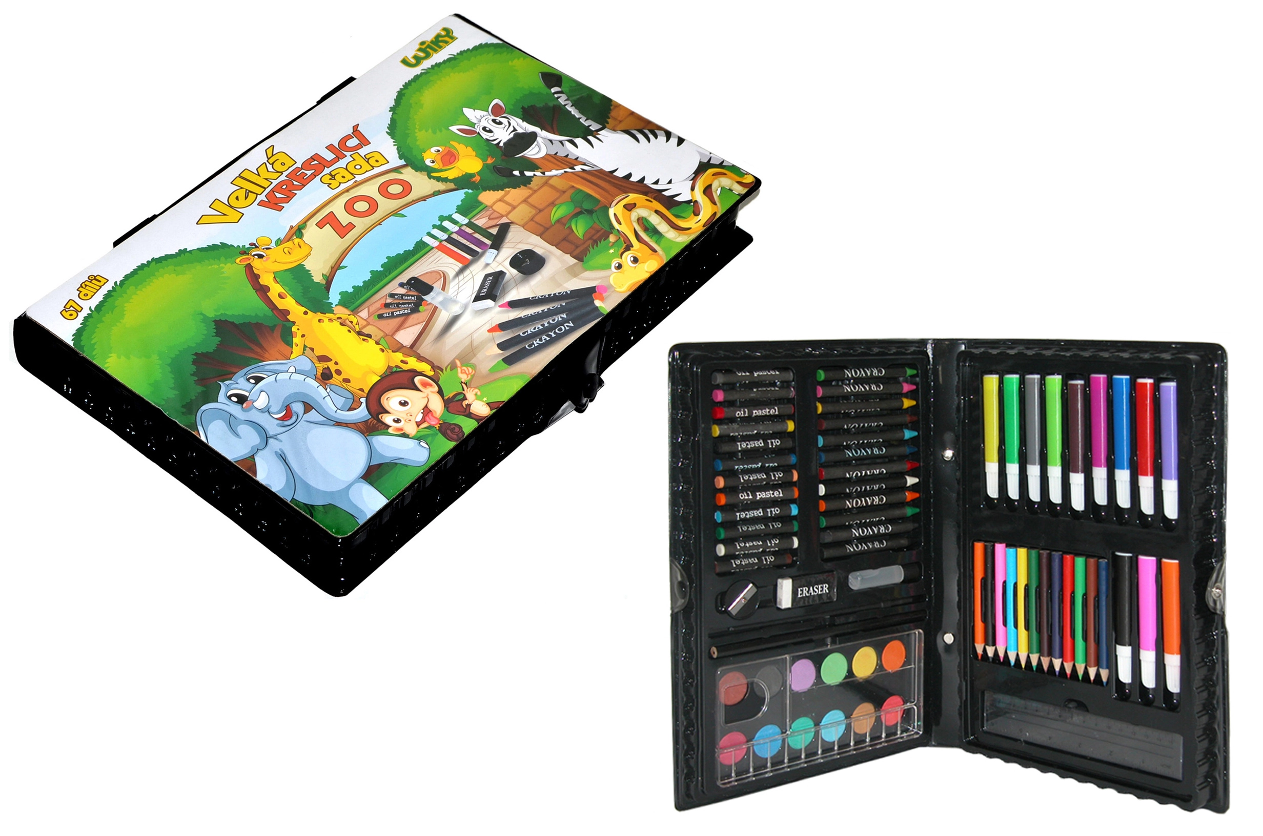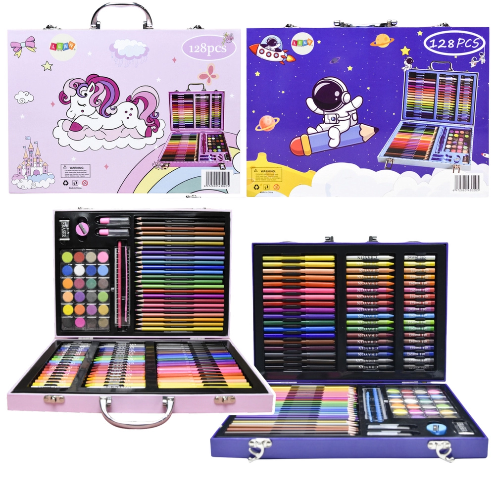 Modiniet bērnos mazo mākslinieku ar mākslas komplektiem, kas apvieno gleznošanu, zīmēšanu un modelēšanu vienā praktiskā komplektā. Bērnu mākslas komplektos ir iekļauti krāsainie zīmuļi, vaska krītiņi, flomāsteri, akvarelis, ūdenskrāsas, temperas, otas, paletes, skiču bloks un kvalitatīrs papīrs, bieži arī plastilīns/modelīna, zīmogas, uzlīmes, līmes un šķēres. Šie mākslas piederumi ir droši, netoksiski un krāsas ir viegli nomazgājamas, lai veidošana būtu gan radoša, gan bezrūpīga.