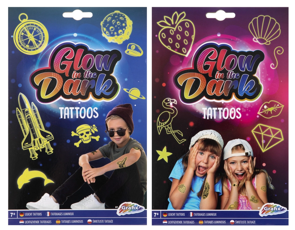 Šeit atradīsiet ķermeņa flomāsterus, krāsainus šablonus, zīmogus, spīguļtetovējumus, tetovējumu uzlīmes un bildītes – visu ar uzsvaru uz netoksisku sastāvu, nomazgājamību un vieglu uzklāšanu. Pagaidu ķermeņa krāsas un bērnu tetovēšanas komplektus var vienkārši notīrīt ar ūdeni un ziepēm, tāpēc eksperimenti ar dizainiem, uzrakstiem un motīviem vienmēr ir bez raizēm.