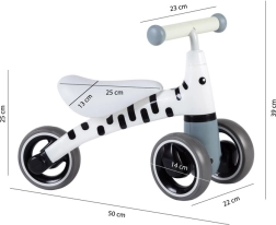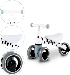 Bērnu līdzsvara ritenis “Zebra” ir ideāls pašiem mazākajiem, kuri sāk savu riteņbraukšanas piedzīvojumu. Paredzēts bērniem no 12 mēnešu vecuma, kuri jau prot spert pirmos soļus. Braukšana ar šo līdzsvara riteni veicina motorisko koordināciju un līdzsvara uzturēšanu. Jūsu mazie riteņbraucēji iemīlēs stundām ilgu prieku un izklaidi!