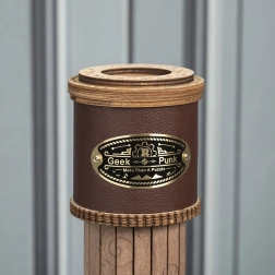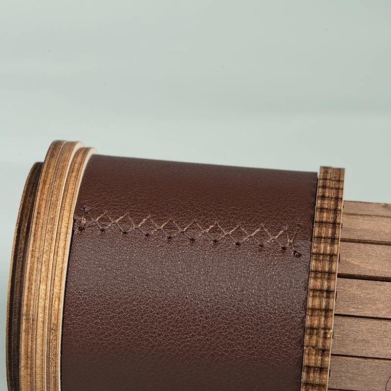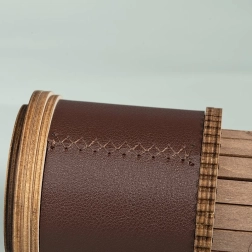 Koka tubuss ar ādas joslu un metāla plāksnīti piešķir modelim vintage izskatu, kas izcels jebkuru interjeru.