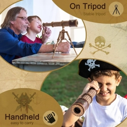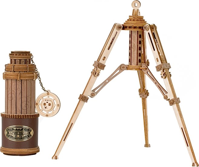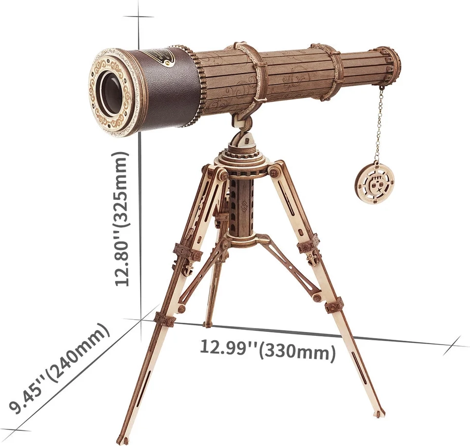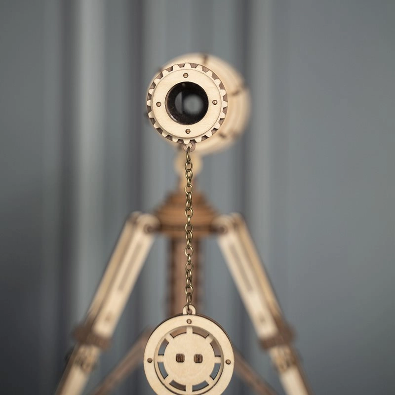 Salieciet savu koka teleskopa modeli no ROBOTIME Rokr sērijas Curious Discovery, ko var izmantot ar statīvu vai bez tā. Šis modelis ir ne tikai skaists dekoratīvs elements, bet arī veicina sīko motoriku un iztēli.