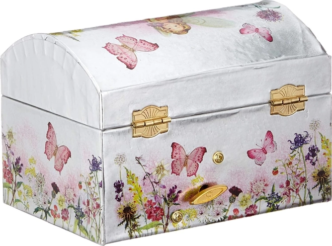 Šī rotaslietu lādīte mūzikas lādītes stilā apvieno izsmalcinātu izskatu un funkcionalitāti. Sudrabaino spīdumu papildina smalki ziedu un tauriņu motīvi, iekšpusē ir ovāls spogulis un rotējoša balerīna. Atverot vāku, atskan slavenā Gulbju ezera melodija, kas pavada ikvienu gredzena vai auskaru novietošanu drošībā.