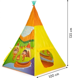 Atklājiet burvīgu telpu spēlēm, paslēpēm un indiāņu un kovboju stāstiem. Krāsainas apdrukas, patīkami audumi un praktiskas durvis veicina radošu spēli un atpūtu. Pateicoties izmēriem 100 × 100 × 135 cm, bērniem būs daudz vietas rotaļlietām un draugiem.
