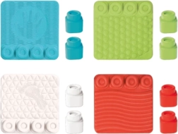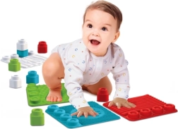 Katrā paklājiņā ir četras vietas klučiem, lai bērni varētu veidot krāsainas kombinācijas, likt, jaukt un būvēt no jauna. Mīksts, pārbaudīts un nekaitīgs materiāls ir drošs bērnu izpētei un viegli kopjams: paklājiņus un klučus var mazgāt trauku mazgājamajā mašīnā līdz 30 °C.