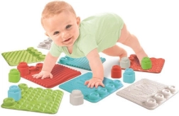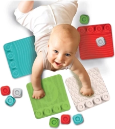 Četri krāsaini paklājiņi ar atšķirīgiem reljefiem mudina bērnus izzināt ar pieskārieniem, rāpot un spert pirmos līdzsvara soļus.