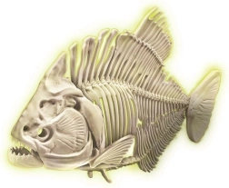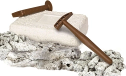 Atklājiet paleontoloģijas pasauli soli pa solim. Ar āmuriņu un kaltu uzmanīgi apstrādājiet zemes bloku un atklājiet kaulus, no kuriem saliksiet reālistisku piraņas skeletu. Pateicoties īpašam fluorescējošam materiālam, skelets pēc apgaismošanas spīdēs tumsā, piešķirot atklāšanai unikālu noskaņu.