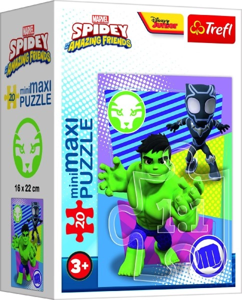 Atklājiet salikšanas burvību ar iemīļotajiem MARVEL varoņiem. Minipuzle miniMAXI ar 20 izturīgiem gabaliem attīsta sīko motoriku, koncentrēšanos un pacietību. Pateicoties lielākiem gabaliem, to viegli salikt arī mazākiem bērniem, un krāsainās Spidey un draugu ilustrācijas motivē turpināt spēlēties.