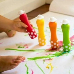 Sūklīša aplikators dozē krāsu vienmērīgi, lai bērni varētu punktiņot, zīmogot un krāsot bez izšļakstīšanās un lieka jucekļa.