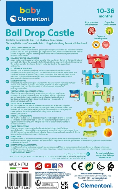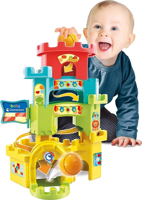 Uzbūvējiet krāsainu pili un vērojiet, kā bumbiņa ripo pa trasi torņu iekšpusē un gar sienām. Ievietojot bumbiņu torņa augšpusē, sākas aizraujošs ceļš pa dažādiem līmeņiem – bērni dabiski trenē sīko motoriku un kustību koordināciju.