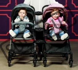 Ratiņus var ātri salocīt līdz nelieliem izmēriem – ideāli automašīnai un sabiedriskajam transportam. Zems svars 6,2 kg atvieglo pārvietošanu.