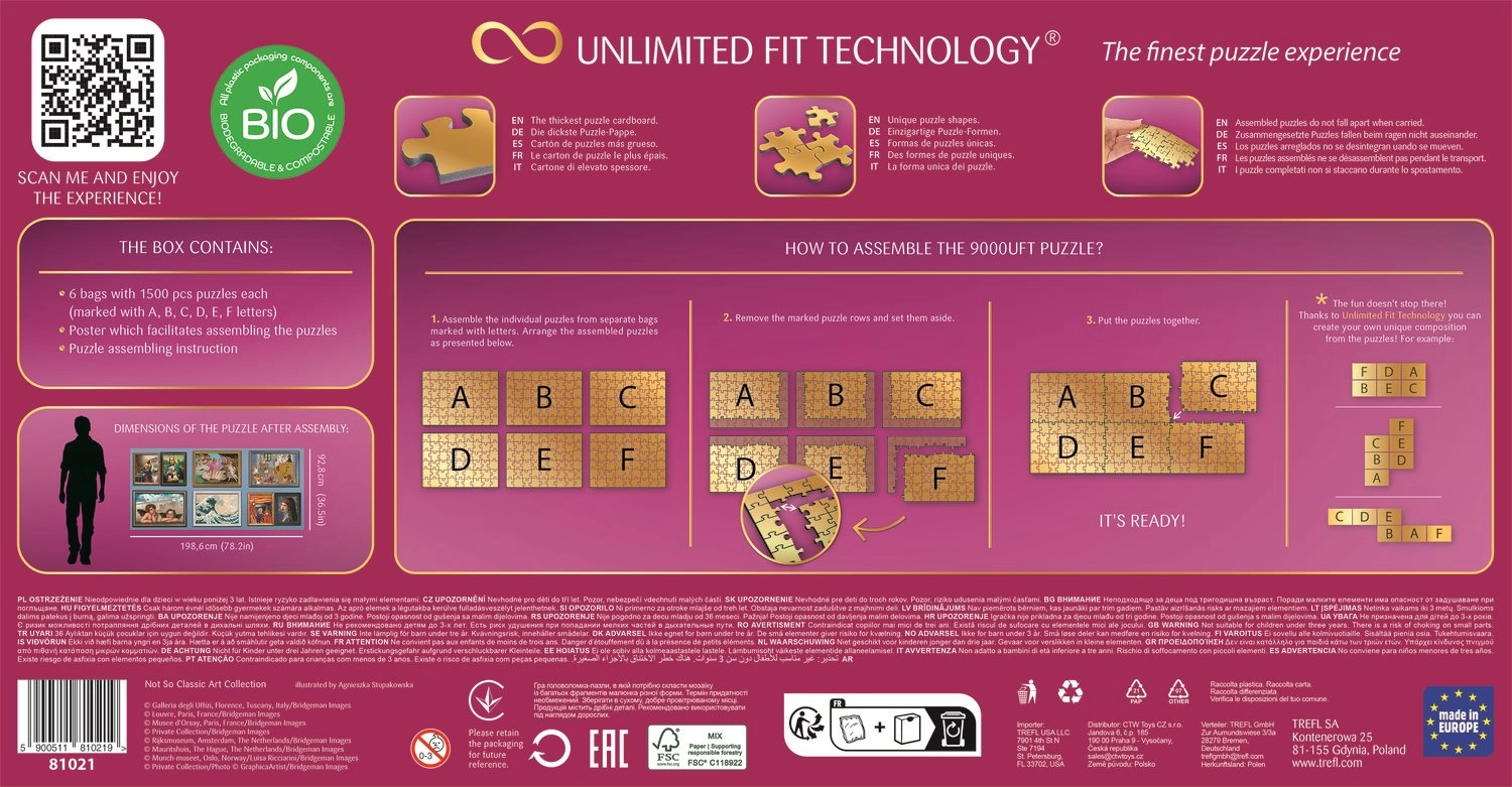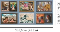Kopējais puzles izmērs, salikts pēc plakāta parauga, ir 1985,6 x 928 mm*. Pateicoties UFT tehnoloģijai, paneļus/puzles var savienot jebkādā veidā, kas nosaka dažādus kopējās kompozīcijas izmērus.