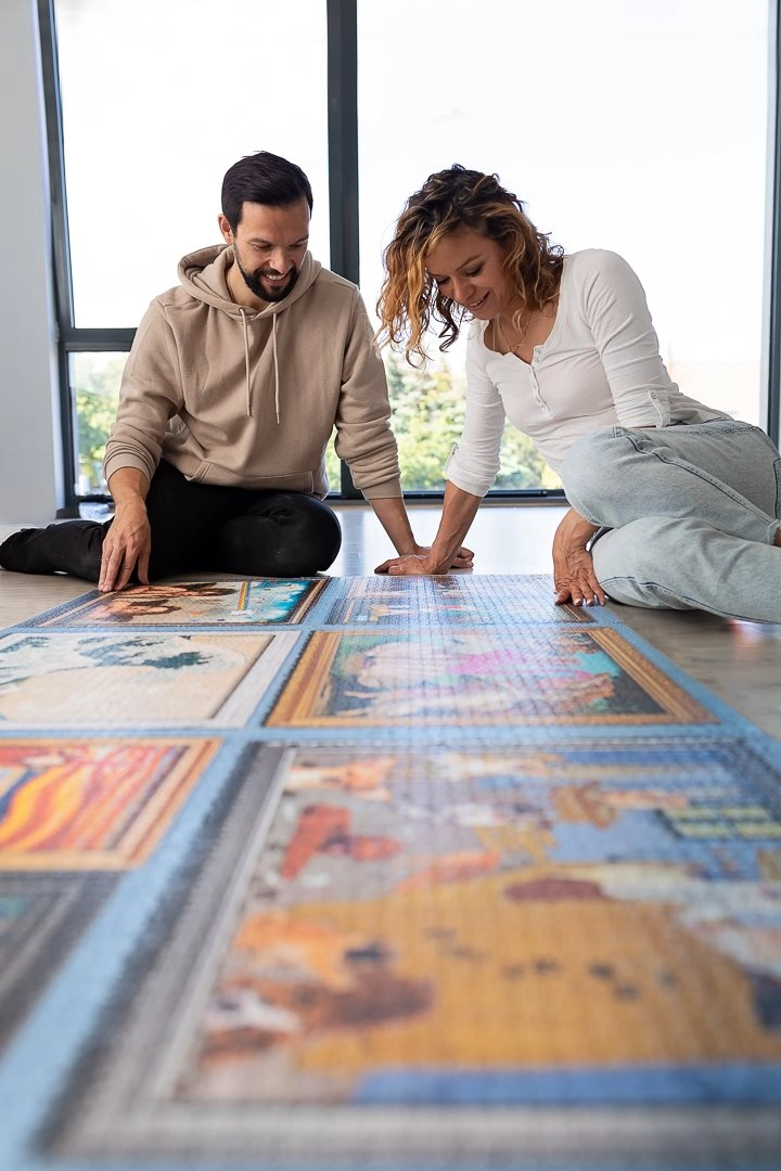 Sešas 1500 gabaliņu puzles var apvienot gigantiskā attēlā pēc pievienotā plakāta vai ļaut vaļu iztēlei un izveidot savu kompozīciju!
