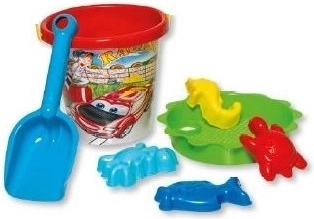 Šis praktiskais smilšu komplekts piedāvā visu, kas bērniem nepieciešams jautrai laika pavadīšanai gan pie ūdens, gan smilšu kastē. Pateicoties vieglajam un izturīgajam plastmasas materiālam, to ir viegli nest un tas izturēs arī intensīvas bērnu rotaļas. Komplektā ietilpst spainis, sietiņš, lāpstiņa un četras veidnes dažādu formu veidošanai.