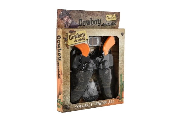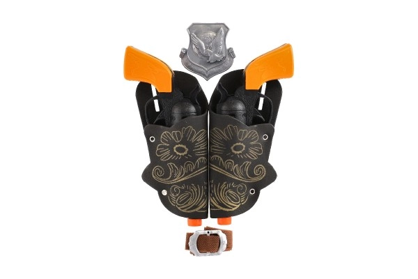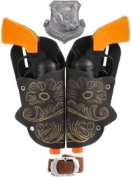 Kovboja dzīve vilina mazos piedzīvojumu meklētājus – ar šo komplektu viņi varēs pietuvoties saviem vesternu stāstiem. Divi stilīgi kolti melni oranžā noformējumā, dekoratīvās makstis un šerifa zvaigzne izveidos perfekto tērpu karnevālam, ballītēm un ikdienas spēlēm.