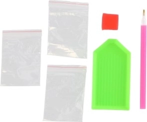 Iekļauts uzklāšanas pildspalva un paplāte ērtam un efektīvam darbam ar kristāliņiem.