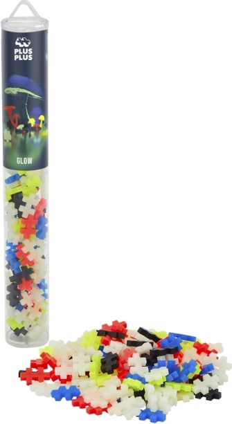 Radošais komplekts Plus-Plus Glow satur 100 detaļas pievilcīgā tubas iepakojumā, ideāli piemērots ceļošanai. Veidojiet savus dizainus ar materiāliem, kas tumsā spīd!