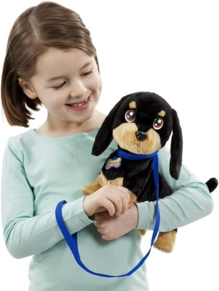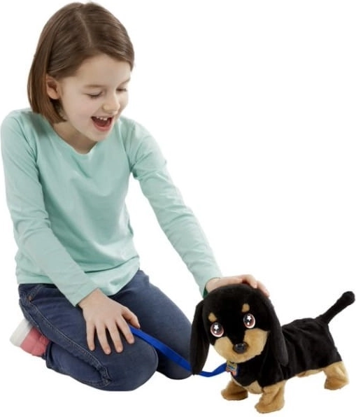 Interaktīvie sensori nodrošina, ka sunītis reaģē uz maigu glāstīšanu pa galvu, veicinot saudzīgu kontaktu un bērna saikni ar mantiņu.