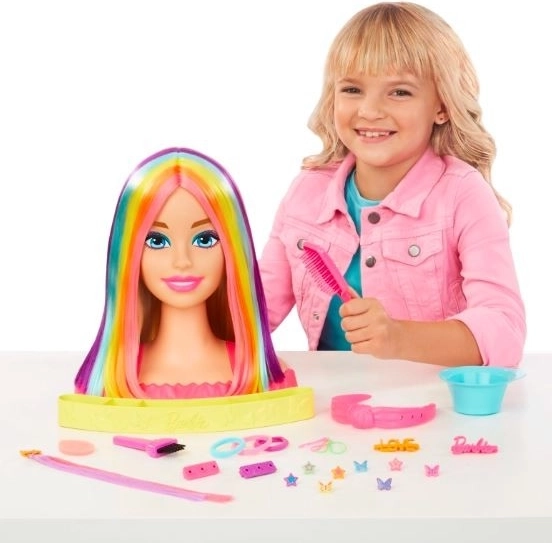 Attīstiet radošumu ar ikonisko BARBIE ķemmēšanas galvu ar gariem blondiem matiem un varavīksnes šķipsnām, kas maina krāsu ar ūdeni. Bērni var veidot bizītes, zirgastes un elegantas frizūras un rotāt tās ar bagātīgu 20 aksesuāru komplektu. Lieliska izvēle mazajām stilistēm, kas sapņo par savu skaistumkopšanas salonu.
