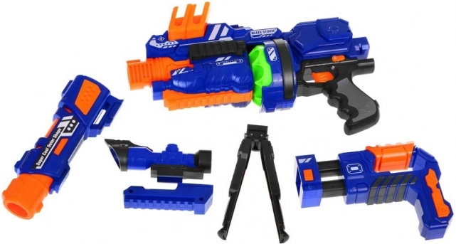 Modulārā bērnu šautene Blaze Storm piedāvā dinamisku, taču drošu izklaidi mājās un ārā. Elektriskais pusautomāts ar bungas mehānismu un aptveri ļauj ātri veikt atsevišķus šāvienus vai īsas sērijas, vienlaikus putu lodītes ir mīkstas un saudzīgas. Pateicoties vaigu balstam, stabilizatoram un iespējai pagarināt stobru, bērni var mācīties precīzi tēmēt un veidot dažādus spēļu scenārijus.
