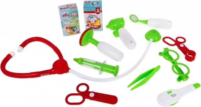 Komplektā ir viss, kas nepieciešams mazajam dakterim: stetoskops, brilles, divas šķēres (arī ar noapaļotu galu), pincete, šļirce, termometrs, kārbiņa ar plāksteriem un kompresēm, apskates spogulītis, izmeklējumu uzgalis, āmuriņš un uzlīmes. Spēle palīdz mazināt bailes no ārsta, attīsta sociālās prasmes un veicina iztēli.