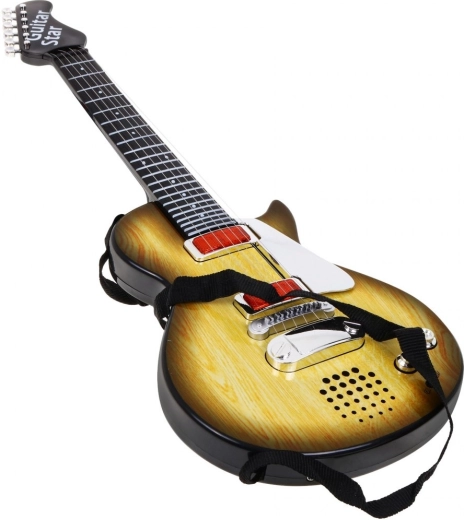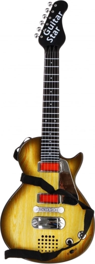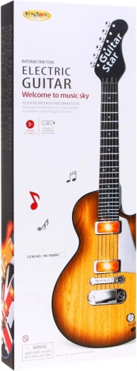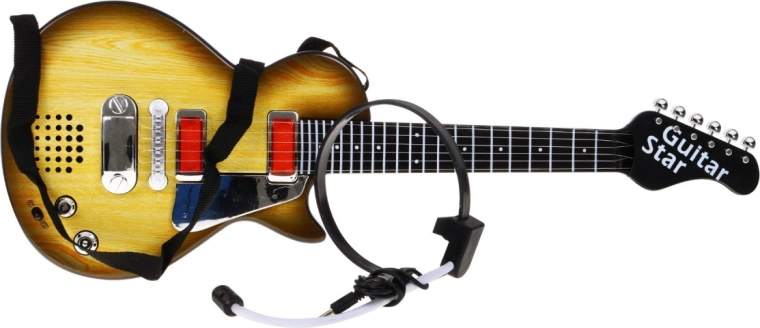Lielākam iespaidam ir gaismas efekti un skaņas, kā arī regulējama siksna ērtai nēsāšanai. Iepakojumā atradīsiet arī austiņu un mikrofona komplektu (headsetu), ko var pieslēgt tieši ģitārai – ideāli vienlaikus dziedāšanai un spēlēšanai. Rotaļlieta atbilst CE sertifikācijai un darbojas ar trim AA baterijām.