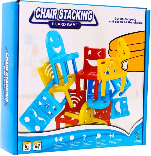 Izklaidējoša un aizraujoša ģimenes spēle, kurā jūs būvējat torni no krāsainiem krēsliem un cenšaties to noturēt stabilu. Attīsta prasmi, koncentrēšanos un pacietību. Ideāli piemērota 1–4 spēlētājiem, no 6 gadu vecuma, ar CE sertifikātu un dāvanu iesaiņojumā.