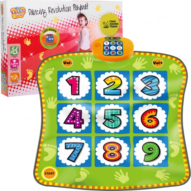 Liels krāsains panelis ar displeju nejauši izvēlas ciparus 1–9 un pavada spēli ar skaņām. Izvēlieties no 3 grūtības līmeņiem, pielāgojiet skaļumu (VOL-/VOL+) un ļaujiet bērniem droši izklaidēties mājās. Enerģijas taupīšanai paklājiņš automātiski izslēdzas pēc 2 minūšu bezdarbības.