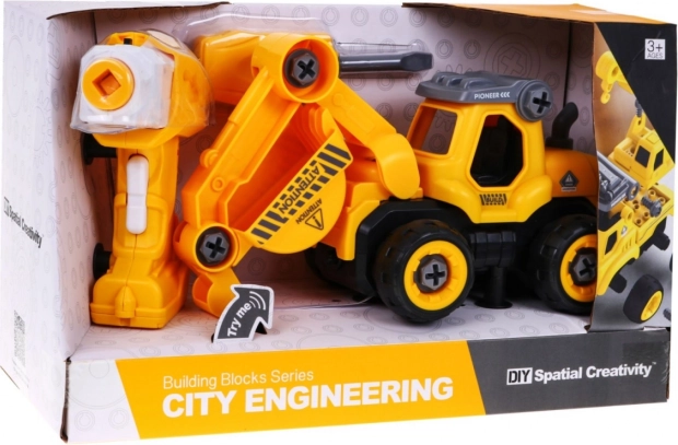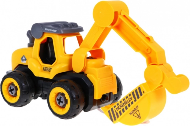 Veiciniet bērnu radošumu un tehniskās prasmes ar ekskavatora konstruktora komplektu, ko var viegli izjaukt un salikt no jauna. Komplektā ietilpst 28 detaļas, manuāls skrūvgriezis un elektriskā urbjmašīna ar 2 maināmiem bitiem. Pārvietojot piedziņas moduli uz ekskavatoru, transportlīdzeklis brauc uz priekšu un atpakaļ, kas padara rotaļas vēl interesantākas.