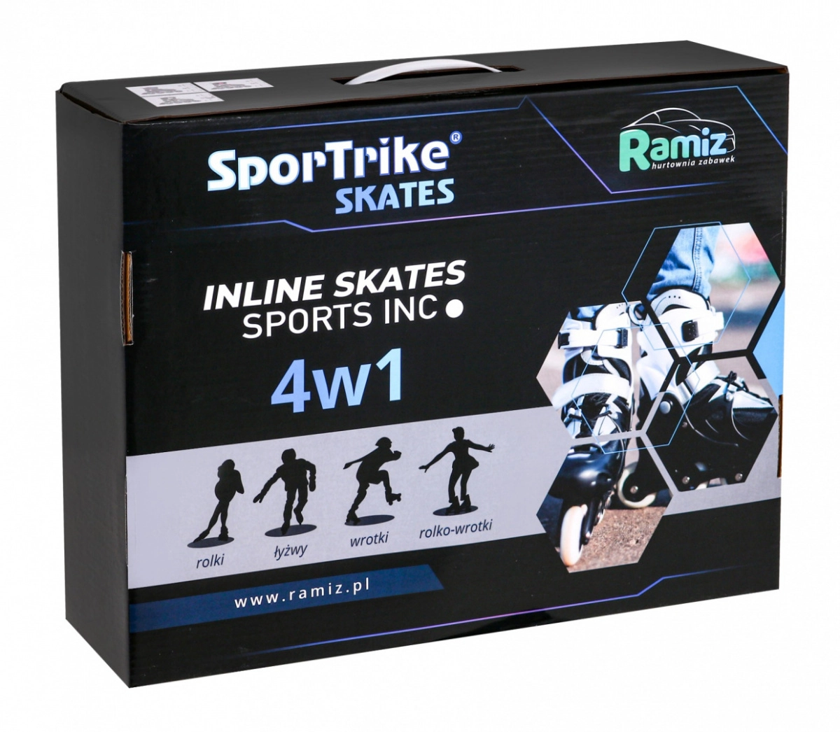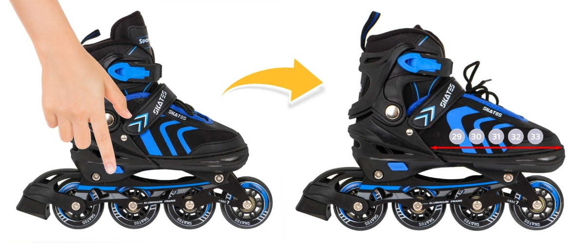 4‑vienā bērnu skrituļslidu komplekts: inline, četrriteņu un ledus slidas, izmērs 29–33