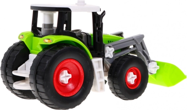Traktoru un piekabi var viegli izjaukt un atkal salikt, pateicoties komplektā iekļautajai urbjmašīnai ar diviem uzgaļiem.