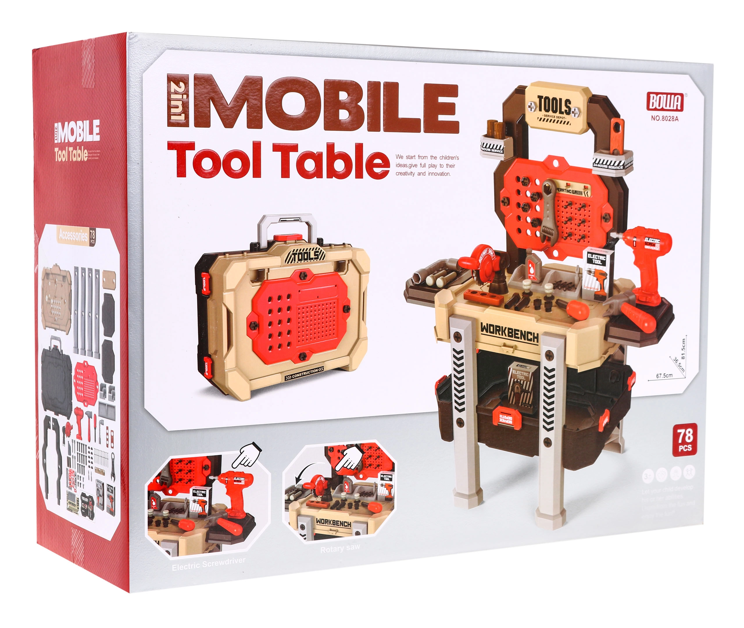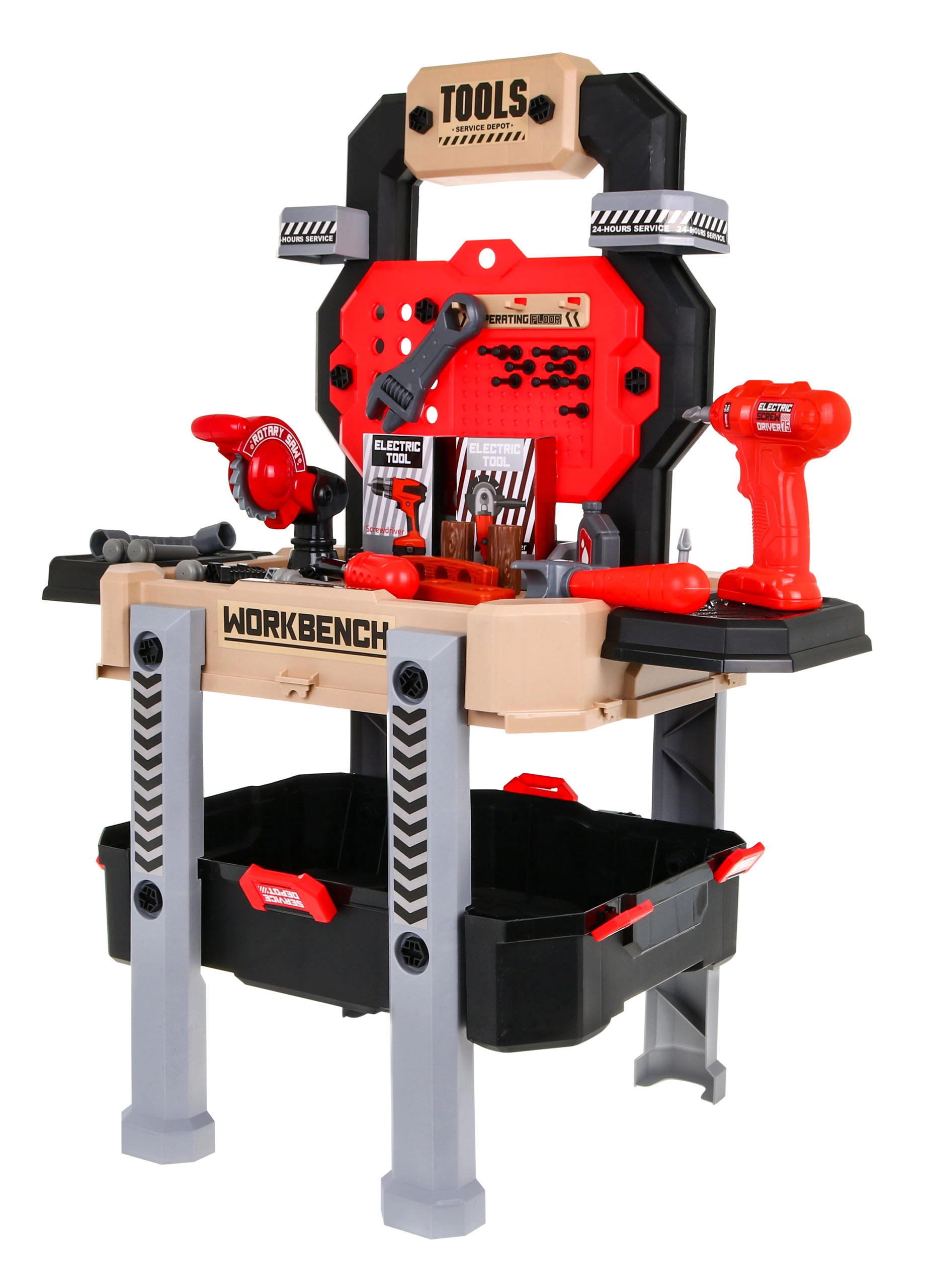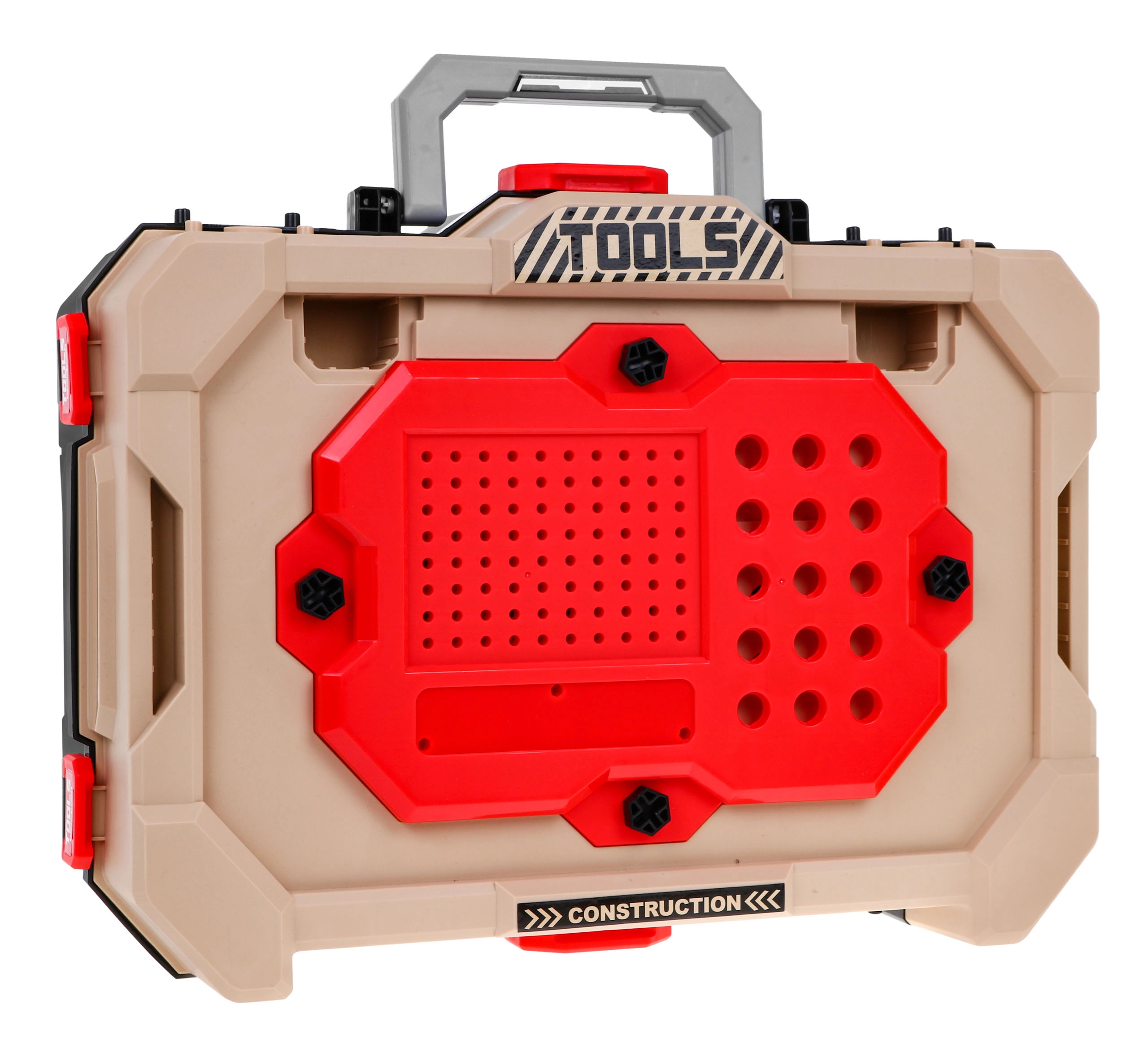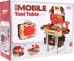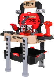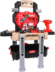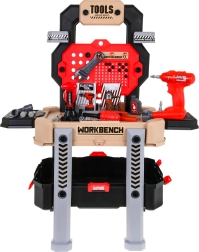 Šis realistiskais bērnu darba sols apvieno pārskatāmu statīvu ar ietilpīgu koferīti, lai instrumenti vienmēr būtu pa rokai un viegli saklājami. Pateicoties 78 elementiem un funkcionālai urbjmašīnai/scrūvgriezim, bērni var izmēģināt skrūvēšanu, zāģēšanu un montāžu, apgūstot pamatprincipus darbnīcas darbā.
