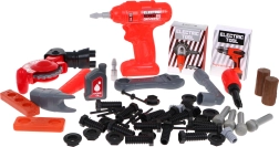 Bagātīgs instrumentu, skrūvju, koka detaļu un piederumu komplekts attīsta bērnu iztēli, koncentrēšanos un sīko motoriku.