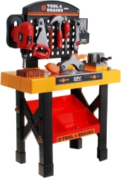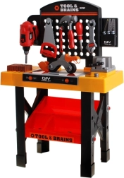 Šis lieliskais darbagalds ir ikviena mazā mehāniķa sapnis. Ar to bērns jutīsies kā īsts remontētājs, kas vada savu darbnīcas stūrīti. Galda komplektācijā ir plašs instrumentu spektrs, kas sakārtots ērtā statīvā.