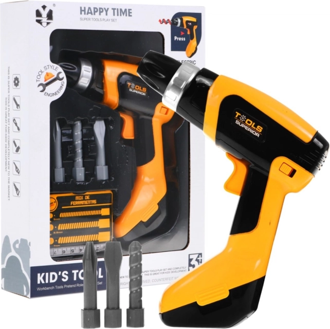 Šī bērnu elektriskā urbjmašīna izskatās un darbojas kā īsta. Bērni var izmantot urbjmašīnu skrūvju pievilkšanai un atskrūvēšanai vai urbšanai. Maināmie uzgaļi padara spēli vēl aizraujošāku.