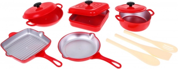 Viss, kas bērniem nepieciešams: 2 katli ar vākiem, vokpanna ar vāku, 2 pannas, 3 karotes un pavāra piederumu komplekts. Iepakots pārnēsājamā kastē – lieliski piemērots arī dāvanai.