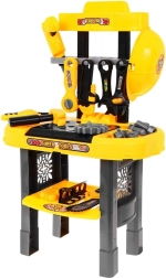 Atklājiet mazo meistarotāju radošo pasauli ar šo lielo bērnu darbnīcas galdu. Komplektā ir 23 daļas, tostarp ķivere, urbjmašīna, āmuriņš, zobrati un citas palīgierīces. Pateicoties vienkāršai montāžai, praktiskām uzglabāšanas vietām un CE sertifikātam, tā ir ideāla rotaļlieta bērniem no 3 gadu vecuma – attīsta sīko motoriku, radošumu un prasmes.