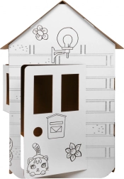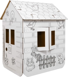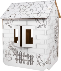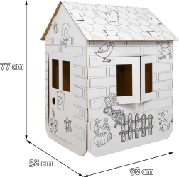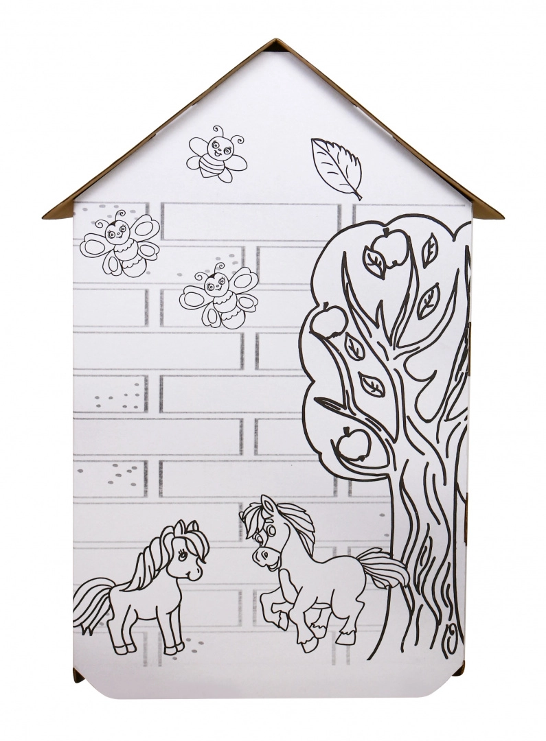 Atklājiet plašo kartona mājiņu XXL, ko bērni var paši salikt un izdekorēt pēc savas gaumes. Tīrās baltās virsmas ar melniem zirgu un dabas kontūru zīmējumiem tieši aicina krāsot ar krītiņiem, flomāsteriem vai vaska krītiņiem (piederumi nav iekļauti).