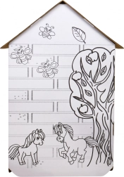 Balto sienu melnie zirgu kontūras aicina krāsot ar krītiņiem vai flomāsteriem. Bērni izveidos mājiņai unikālu izskatu un attīstīs iztēli.