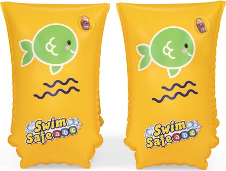 Pateicoties koši dzeltenajai krāsai un rotaļīgajam zaļās zivtiņas motīvam, piedurknes ir labi redzamas un bērniem tās patīk valkāt. Praktiskie vārsti atvieglo ātru uzpūšanu un gaisa nolaišanu, bet kompaktie izmēri nozīmē, ka tās ir viegli paņemt līdzi atvaļinājumā, uz baseinu vai pie ezera.