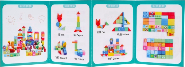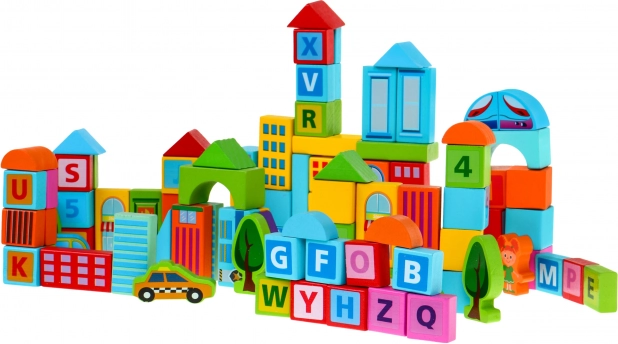 Drošība un izturība ir pirmajā vietā: kluči ir izgatavoti no kvalitatīva koka, krāsoti ar nekaitīgām krāsām un tiem ir gludas, patīkami apstrādātas malas. Komplektā ir iekļauta attēlu rokasgrāmata ar būvējumu idejām, kas palīdzēs bērniem sākt un attīstīs viņu fantāziju.