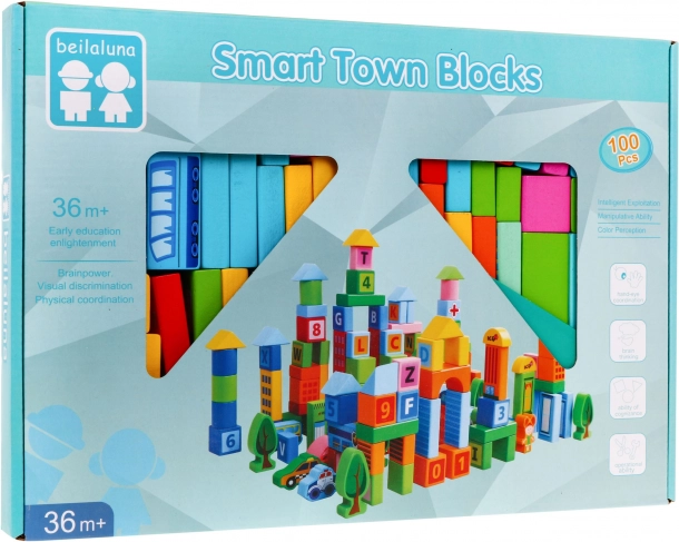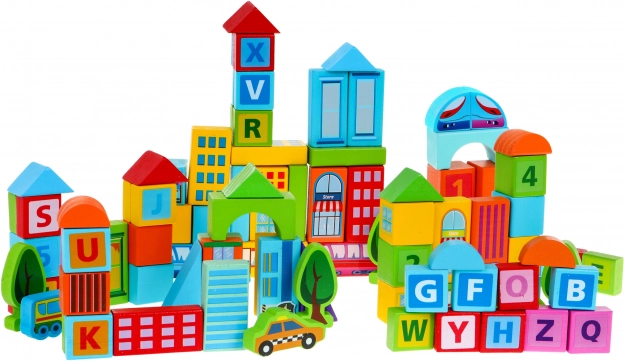 Atklājiet klasiskās spēles burvību mūsdienīgā izpildījumā: koka kluči “Pilsēta” ar 100 detaļām bērniem no 3 gadu vecuma. Izgatavoti no kvalitatīva koka, ar drošām krāsām un gludām malām, tie veicina radošumu, sīko motoriku un telpisko iztēli. Dažādie veidi un krāsas un pievienotā attēlu iedvesma mudina būvēt mājas, torņus un transportlīdzekļus.