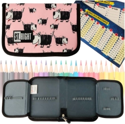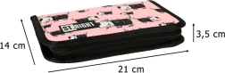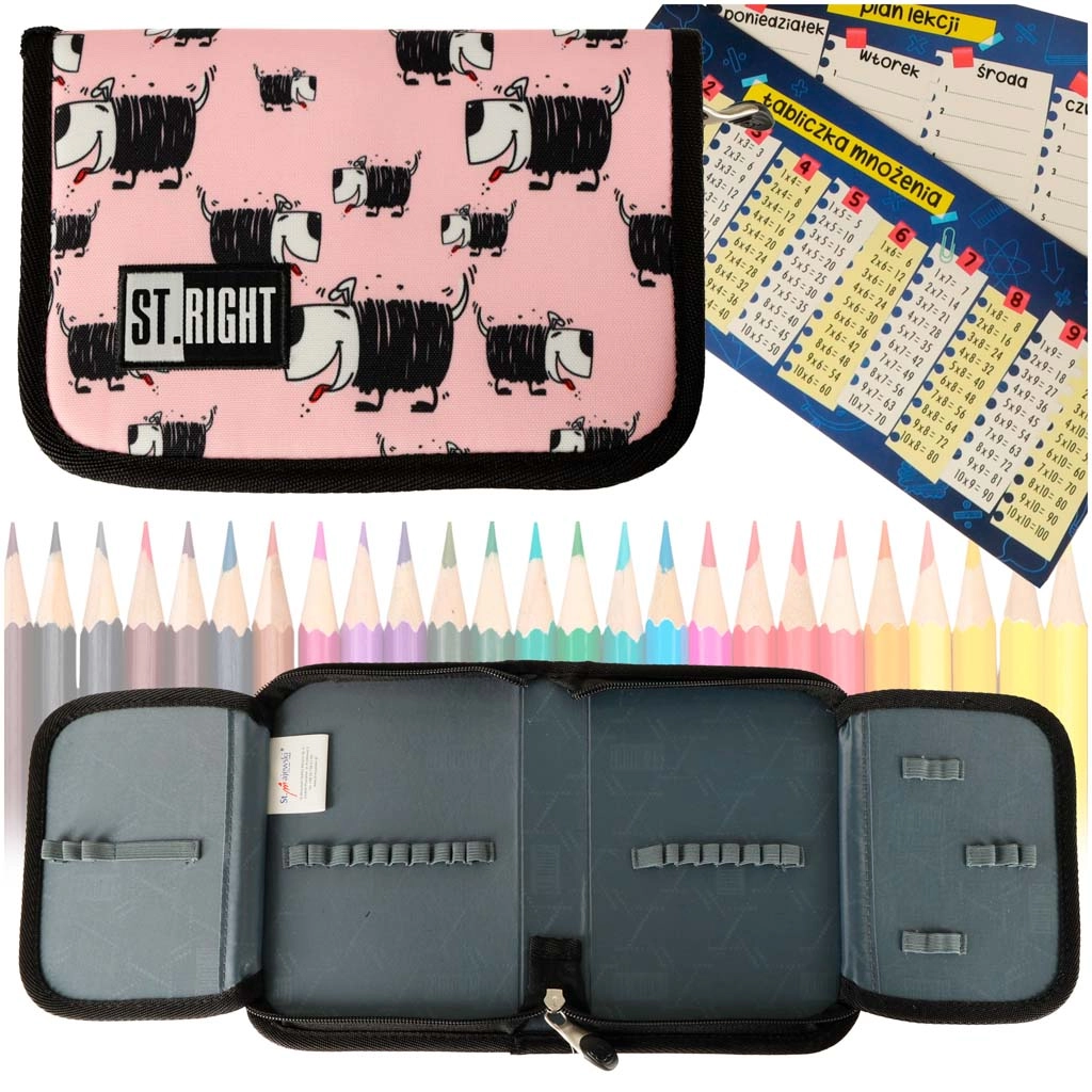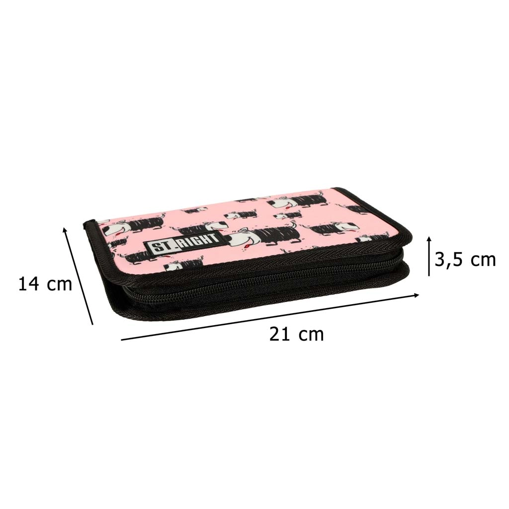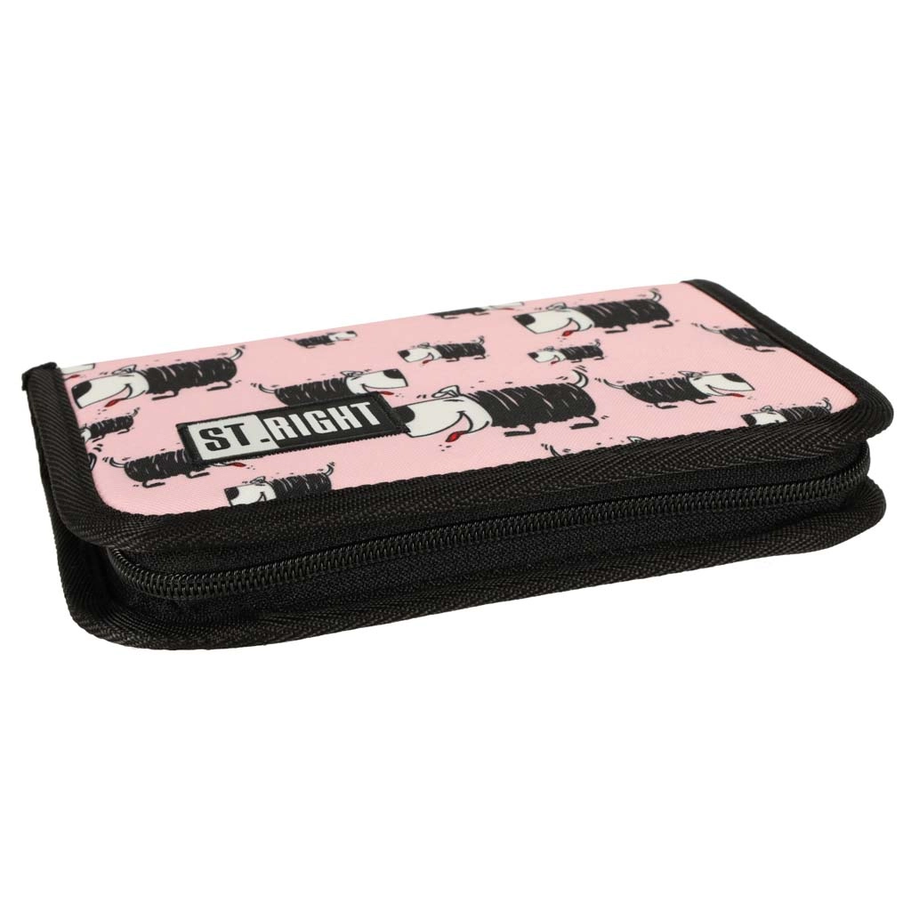 Praktisks skolas penālis ar divām atlokēm rozā dizainā ar suņu motīvu. Nodrošina pārskatāmu skolas piederumu kārtojumu, ir aizverams ar rāvējslēdzēju un tam ir ergonomiska slīdņa cilpa. Iekšpusē atradīsiet pārbīdāmās starpsienas un elastīgus stiprinājumus marķieriem, zīmuļiem un lineālam, komplektā ir arī reizināšanas tabula un stundu saraksts.