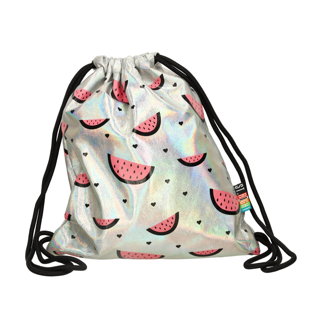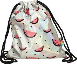 Viegls un stilīgs mugursomas maisiņš ar hologrāfisku efektu un rotaļīgu arbūzu apdruku. Tam ir galvenā stingām aizverama kompartīcija, praktiska priekšējā kabata ar rāvējslēdzēju un izturīgas auklas–lences ērtai nēsāšanai. Ideāli skolai, sportam, brīvā laikam un pilsētai.