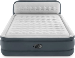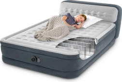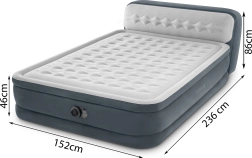Divslāņu piepūšamā gulta INTEX ar Dura-Beam Fiber-Tech tehnoloģiju piedāvā lielu gulēšanas virsmu, integrētu galvgalu un iebūvētu elektrisko pumpi ātrai piepūšanai un iztukšošanai. Augstums no grīdas 46 cm un mīksta velūra virsma nodrošina komfortu, stabilitāti un koptu izskatu. Maksimālā nestspēja 272 kg garantē uzticamu gulēšanu diviem.